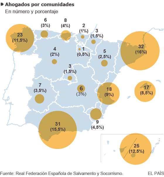 Comparando número de bañistas ahogados por región